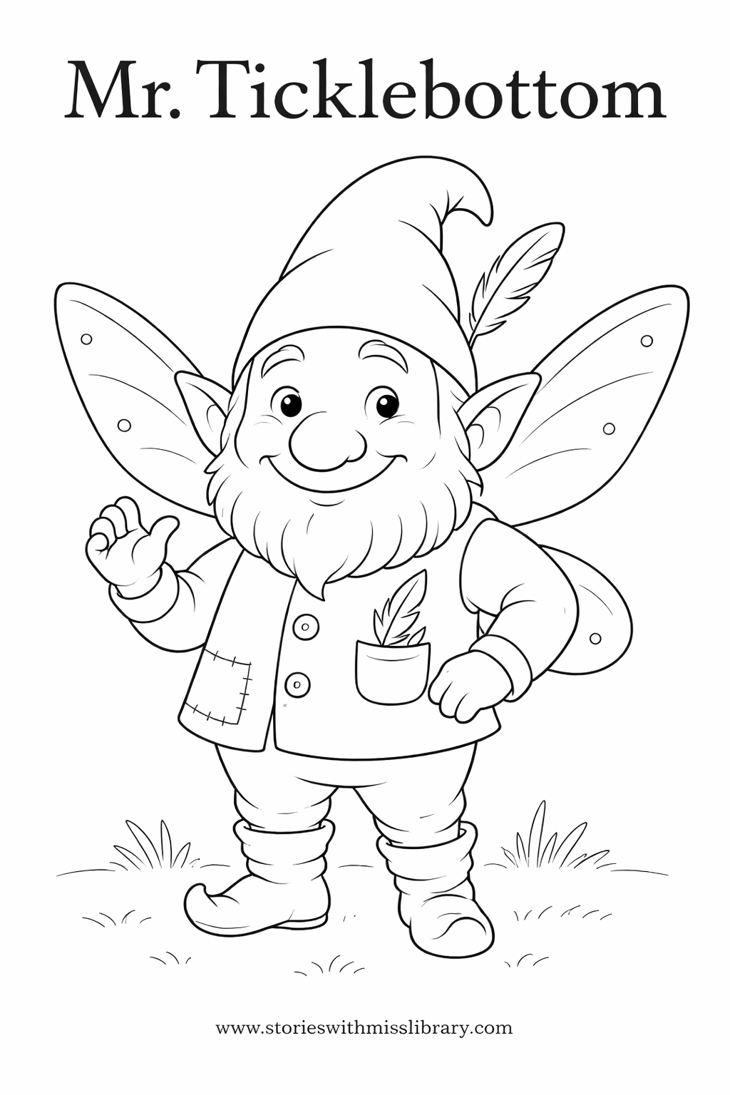 Mr. Ticklebottom is half fairy and half gnome. He traveled here in the most unusual way—by sneaking into the pocket of none other than Mother Goose herself! (Mother Goose is Miss Library’s sister find here stories here: https://www.youtube.com/playlist?list=PLoDvA_LAzBwgLJ_RKm6dUVpuilsVEjP4L